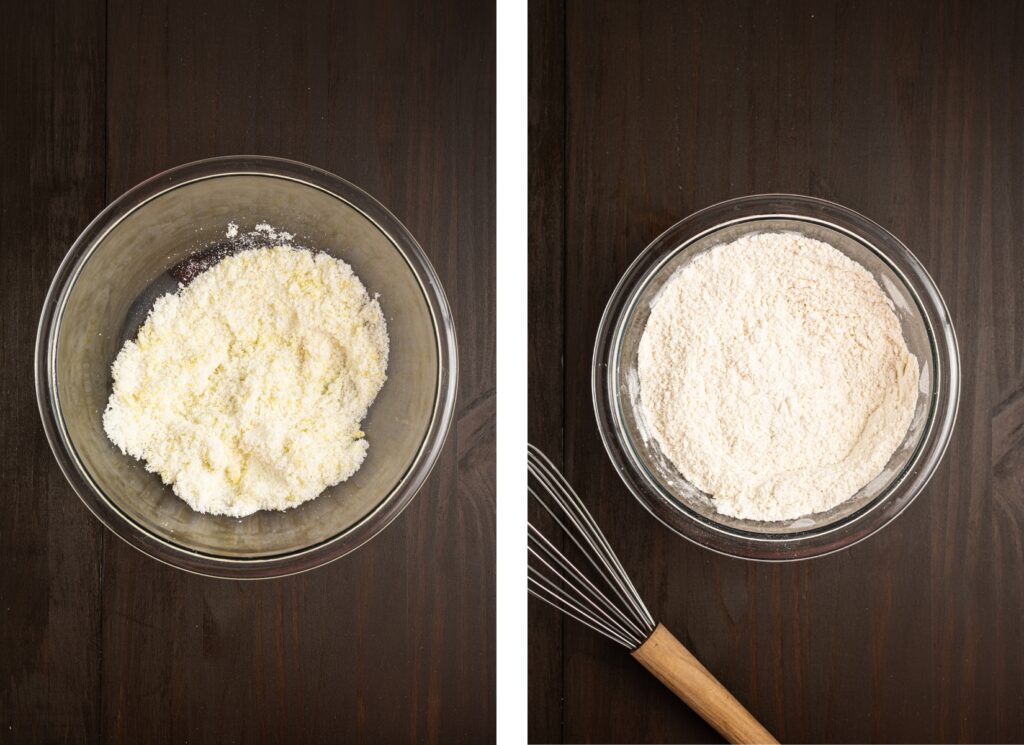 Add the sugar and lemon zest to a large mixing bowl. Rub the zest into the sugar with your fingers until it becomes fragrant.