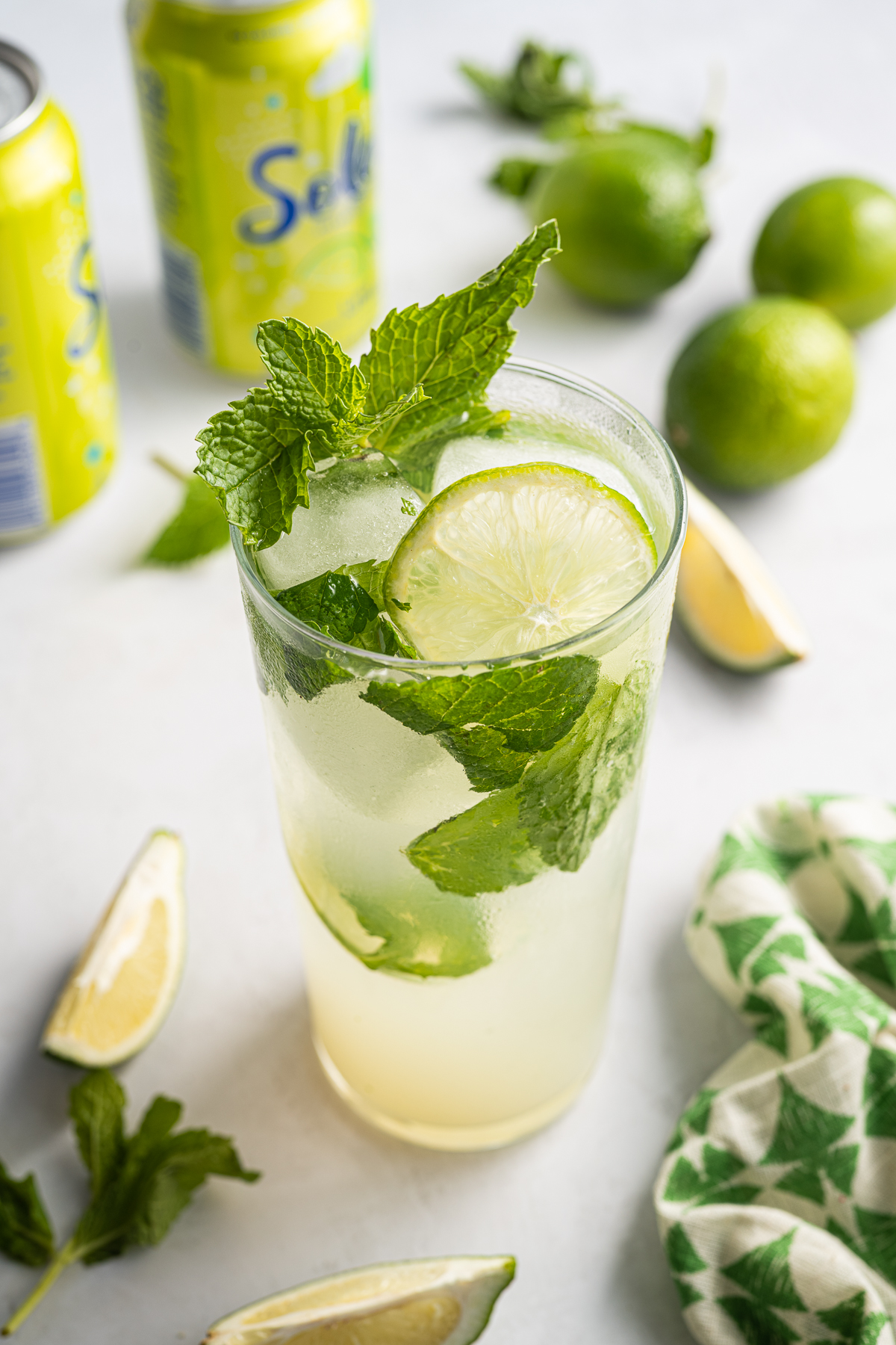 Another plus for this recipe is that it doesn't require a lot of ingredients. You'll only need some fresh mint leaves, lime juice, simple syrup, ice cubes, and lime soda water (I like Soleil Lime Sparkling Water).